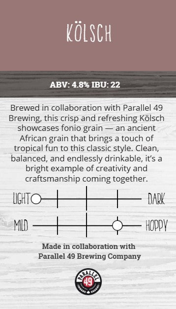 This collaboration beer with Parallel 49 is a perfect crisp and refreshing brew!